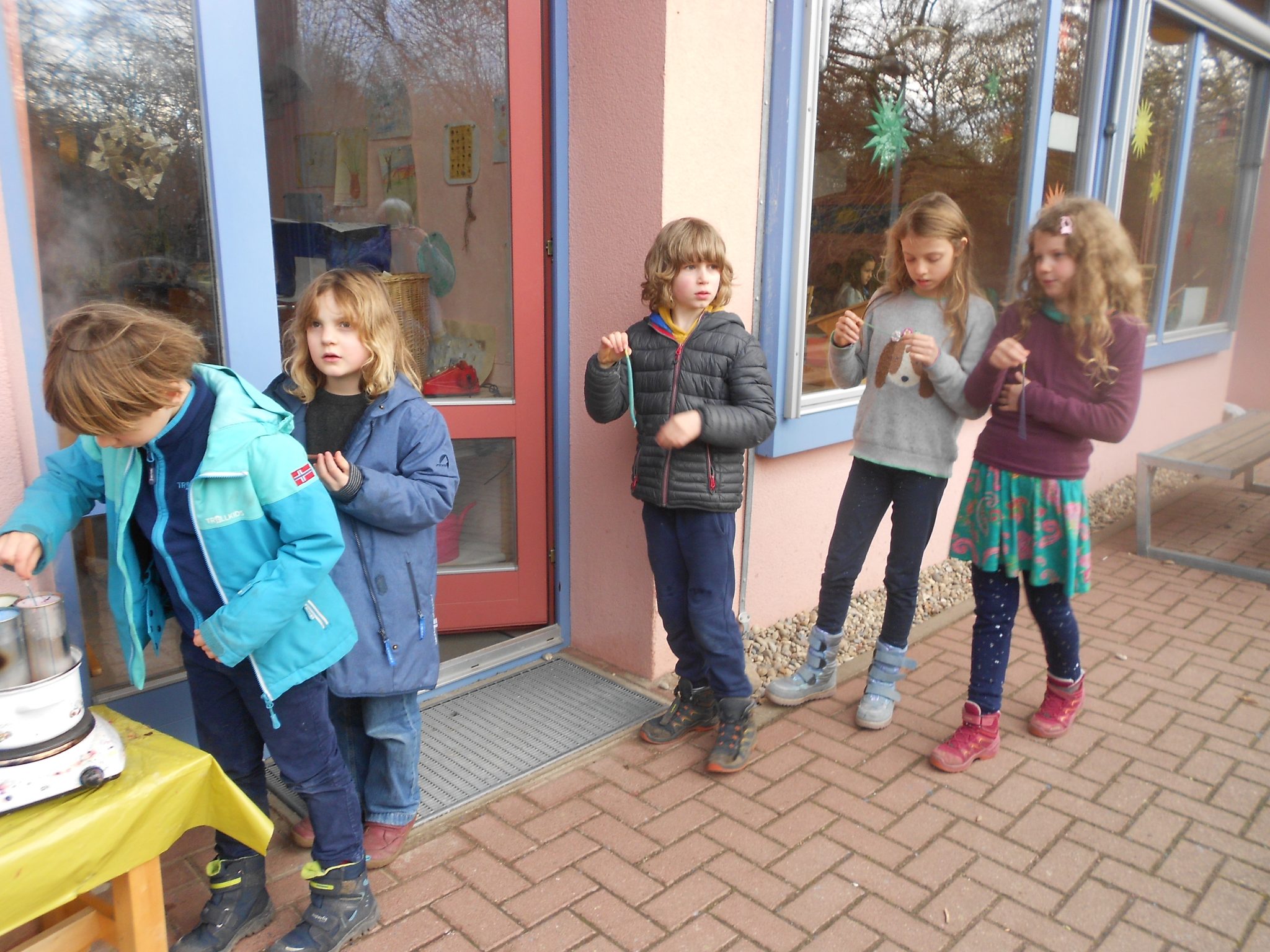 Wie jedes Jahr in der Adventszeit bot Bernhard Brande den Hortkindern auch im Dezember 2025 das Kerzenziehen an.