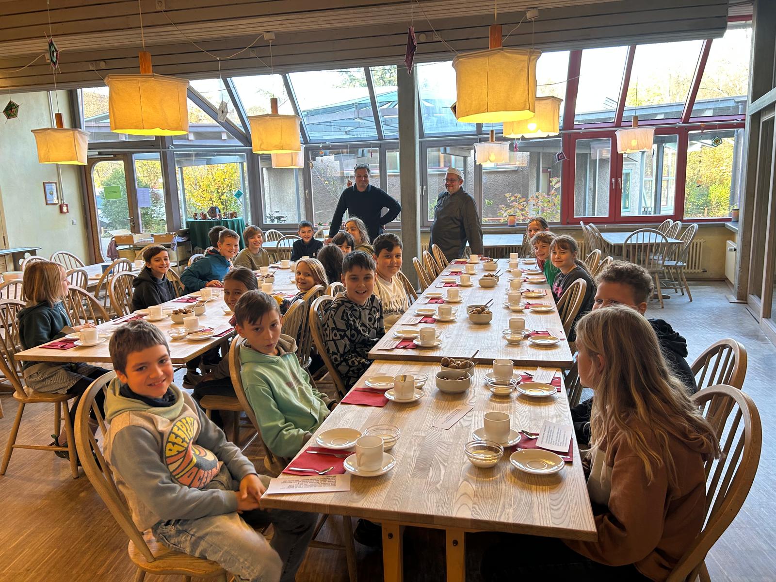 Um das Ganze zu einem würdigen Abschluss zu bringen, wurde die Ernte an einem Schulmorgen Mitte November von der inzwischen 4a verkostet. Die Knollen – und die Knöllchen – wurden von den Mitarbeitenden der Küche auf unterschiedliche Weisen zubereitet und danach von den Schüler*innen mit Freuden verschlungen. Abgerundet wurde das Beisammensein mit vielen weiteren Informationen rund um die Kartoffel.